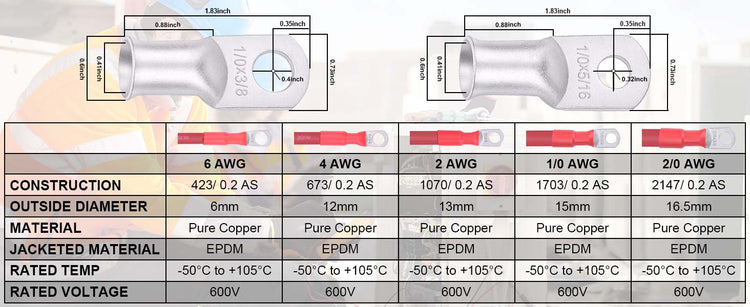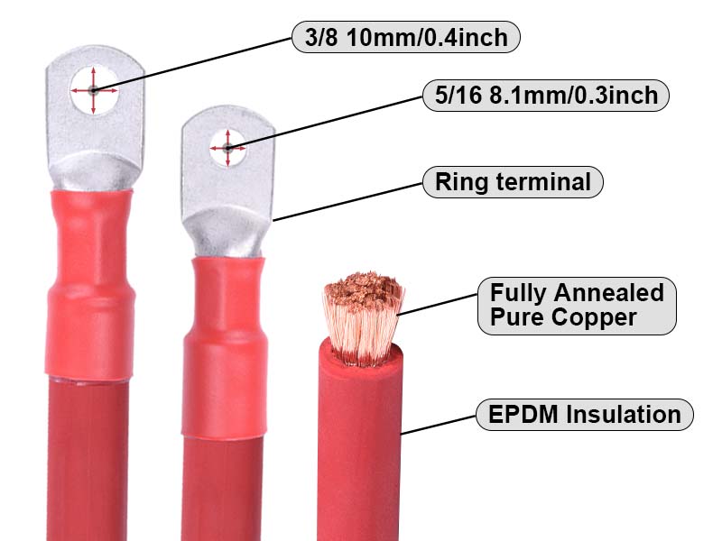 ACOPOWER 2/0 AWG Flexible Battery Cable with 5/16" Terminals